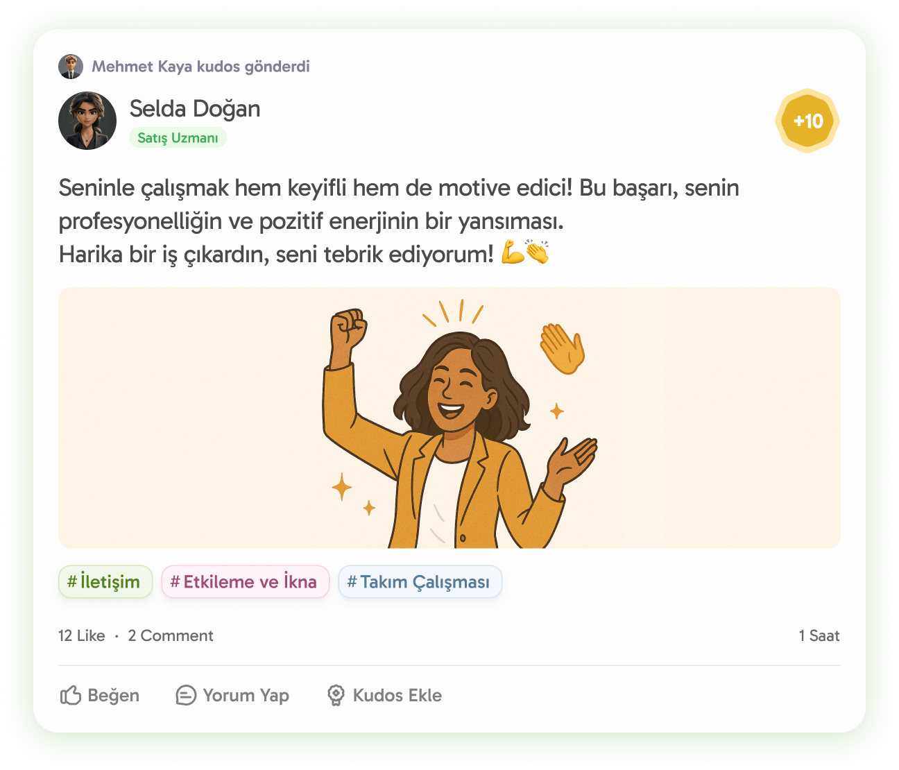 Takdir ve teşekkürleri belirlediğiniz şirket değerleri ve yetkinliklerle ilişkilendirerek dijital, görünür ve ölçülebilir hale getirebilirsiniz.